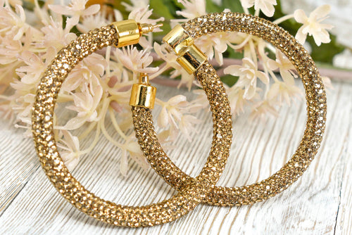Boho Aged Look Hammered Oblong Gold Tone Hoop Earrings -